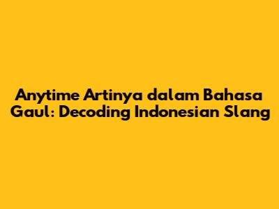 Hey guys! Have you ever stumbled upon the word "anytime" while scrolling through your Indonesian social media or chatting with local friends and wondered, "What does 'anytime' mean in Indonesian slang?" Well, you're not alone! Slang is a constantly evolving part of any language, and Indonesian slang, or bahasa gaul, is no exception. It’s peppered with loanwords, abbreviations, and creative twists that can leave even seasoned language learners scratching their heads. So, let’s dive into the world of Indonesian slang and decode the meaning of "anytime" so you can confidently use it in your conversations.