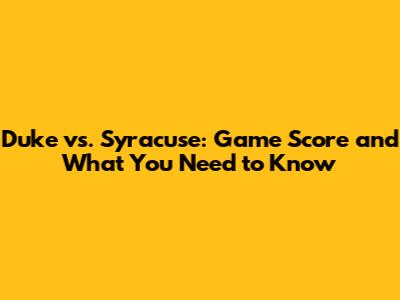 Duke Vs. Syracuse: Game Score And What You Need To Know