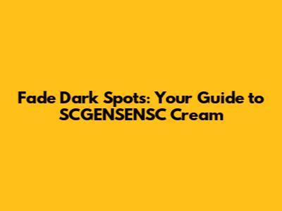 Fade Dark Spots: Your Guide To SCGENSENSC Cream