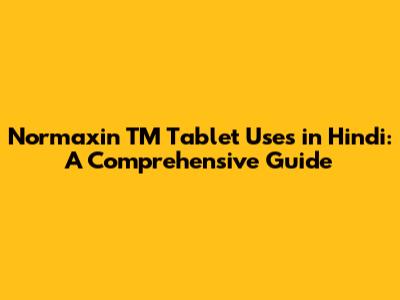 Normaxin TM Tablet Uses In Hindi: A Comprehensive Guide