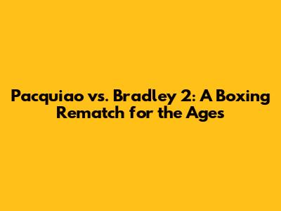 Pacquiao Vs Bradley 2: A Boxing Rematch For The Ages