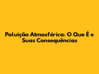 Poluição Atmosférica: O Que É E Suas Consequências