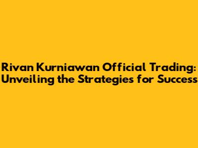 Rivan Kurniawan's Trading Strategies: A Comprehensive Guide