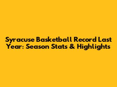 Syracuse Basketball Record Last Year: Season Stats & Highlights